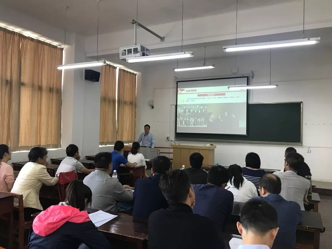 按照学校党委统一部署,理学院党总支于2019年9月28日在蔡家关校区一教313教室开展了“庆祝新中国成立70 周年,传承红色革命精神”主题党日活动。理学院全体教职工参加主题党日活动。