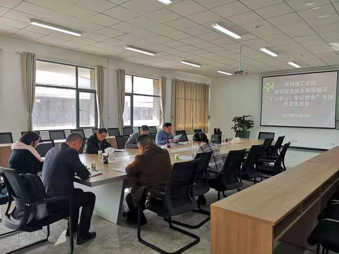 按照学校党委统一部署,12月9日下午14:30,在贵安校区理学院会议室召开了贵州理工理学院党总支领导班子“不忘初心、牢记使命”专题座谈会,参会人员为:巡回指导组组长卢文雄同志,理学院党总支书记袁小松同志,理学院党总支副书记、组织员蒙蔺同志,理学院党总支委员、副院长曾诚同志,列席人员为理学院院长李智玲同志(无党派)、理学院教师党支部书记张世功同志。办公室主任王大飞同志负责记录。会上,袁小松同志书面通报理学院党总支领导班子2018年度民主生活会和2018年以来校内巡察发现问题整改措施落实情况以及本次专专题民主生活会会前征求意见情况,并代表理学院领导班子作班子作班子对照检查,随后党总支书记袁小松同志、党总支委员曾诚同志、蒙蔺同志也分别作了个人对照检查发言。