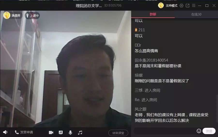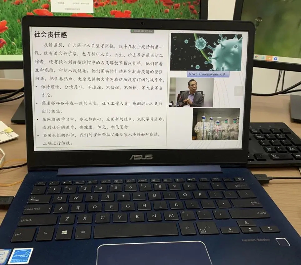 在网络思政教学中,老师们始终做到晓之以理、动之以情。大家没有空洞的政治说教,有的是循循善诱、细致入微的心灵交流,在别样的思政教育过程中,大家精神饱满、面带笑容、语速适当,展现了大学教师的良好风貌。尤为让人感动的是,至今仍身在湖北、处于重度疫情区的景湘李、胡曙、江胜菊三位老师,克服重重困难,把巨大的心理压力深埋心里,在网络镜头中的他们,同学们依然能够听到他们洪亮的声音和亲切而坚毅的脸庞……