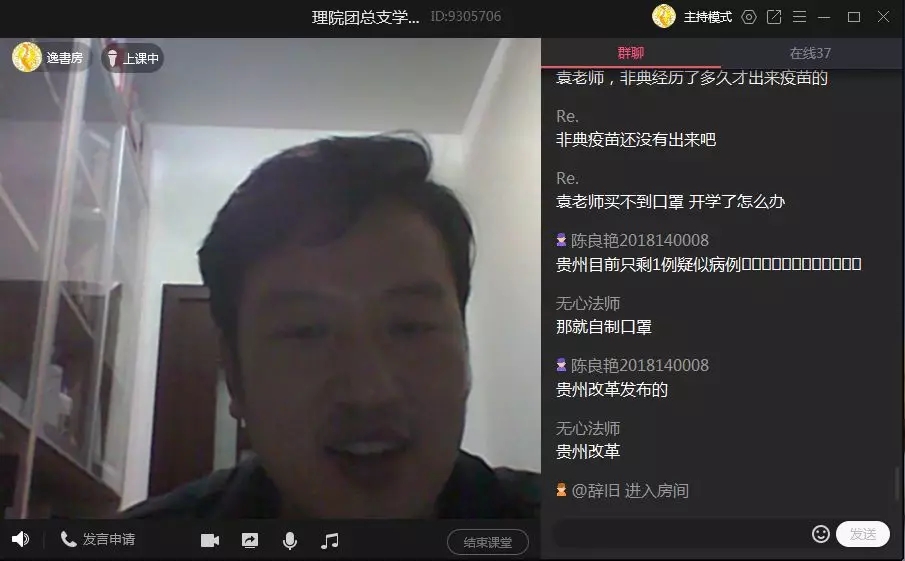 学院党总支领导率先垂范,在3月2日专业教学网络课程正式开始之前,3月1日晚20:00-21:00期间,党总支书记袁小松率先利用QQ群课堂的网络教学功能,给全院团总支、学生会及“想理”新媒体中心全体学生干部上了一堂网络思政课。在思政课上,袁小松积极和学生干部沟通,了解他们的生活学习状态,和学生亲切交流。学生在教学过程中积极发言,反馈了自己在学习和生活中的想法。结合学生干部们的课堂表现,袁小松采取“答记者问”的方式,积极回应学生关切,对学生在疫情期间的学习生活予以指导。同时,结合自身对疫情防控工作的认识、感悟和学校的统一要求,袁小松分别从培养爱国情感、坚定制度自信、保持阳光心态、学会自律自强等方面对学生进行教育。他希望同学们正确认识困难、克服困难,坚持好网络学习。同时,袁小松还结合自己对贵州赴鄂州医疗救援队队员们感人事迹的认识,向大学生们做了感人的分享。