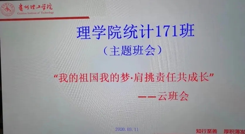 为积极响应落实学校疫情防控要求,深入了解学生思想动态,理学院统计171班全体学生于2020年3月11日下午16:00通过网络相聚一堂,召开了一次特别的主题云班会。