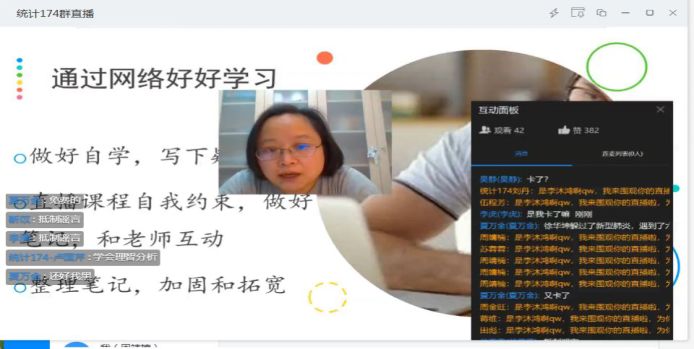 为了积极应对新型冠状病毒,坚决打赢这场防控疫情总体战、阻击战。3月7日晚,统计174班开展了一场以“我的祖国我的梦•肩挑责任共成长”为主题的网络班会,理学院院长李智玲作为班级导师参加,班主任周靖楠主持会议。