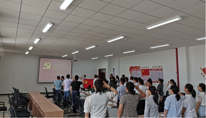 按照流程安排,奏唱国歌后,在党总支副书记蒙蔺的带领下,全体党员面对鲜艳的党旗,高举右手,一起重温入党誓词:“我志愿加入中国共产党,拥护党的纲领,遵守党的章程,履行党员义务,执行党的决定,严守党的纪律,保守党的秘密,对党忠诚,积极工作,为共产主义奋斗终身,随时准备为党和人民牺牲一切,永不叛党”。大家洪亮的声音,在理学院会议室久久回荡。