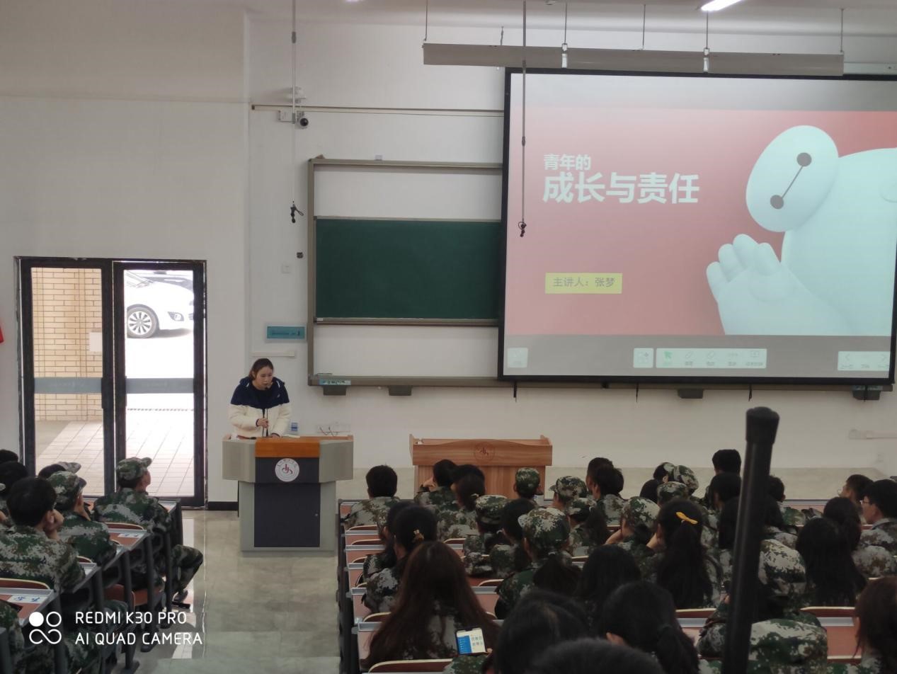 宣讲会上,张梦老师就青年的成长与责任向同学们展开了演讲,她通过分享习近平总书记年轻时期的励志故事,回顾了中国共产党人在不同历史时期践行初心和使命的历史征程。倡议大学生们要充分利用大学期间宝贵的学习时光,努力学习科学文化知识,加强实践创新,用中国梦激扬青春梦,奋发图强,勇于担当,不忘初心、牢记使命,奋力走好新时代的长征路,努力成为担当民族复兴大任的有为青年。同时张梦老师还嘱咐同学们关于安全教育、大学环境适应等相关事宜