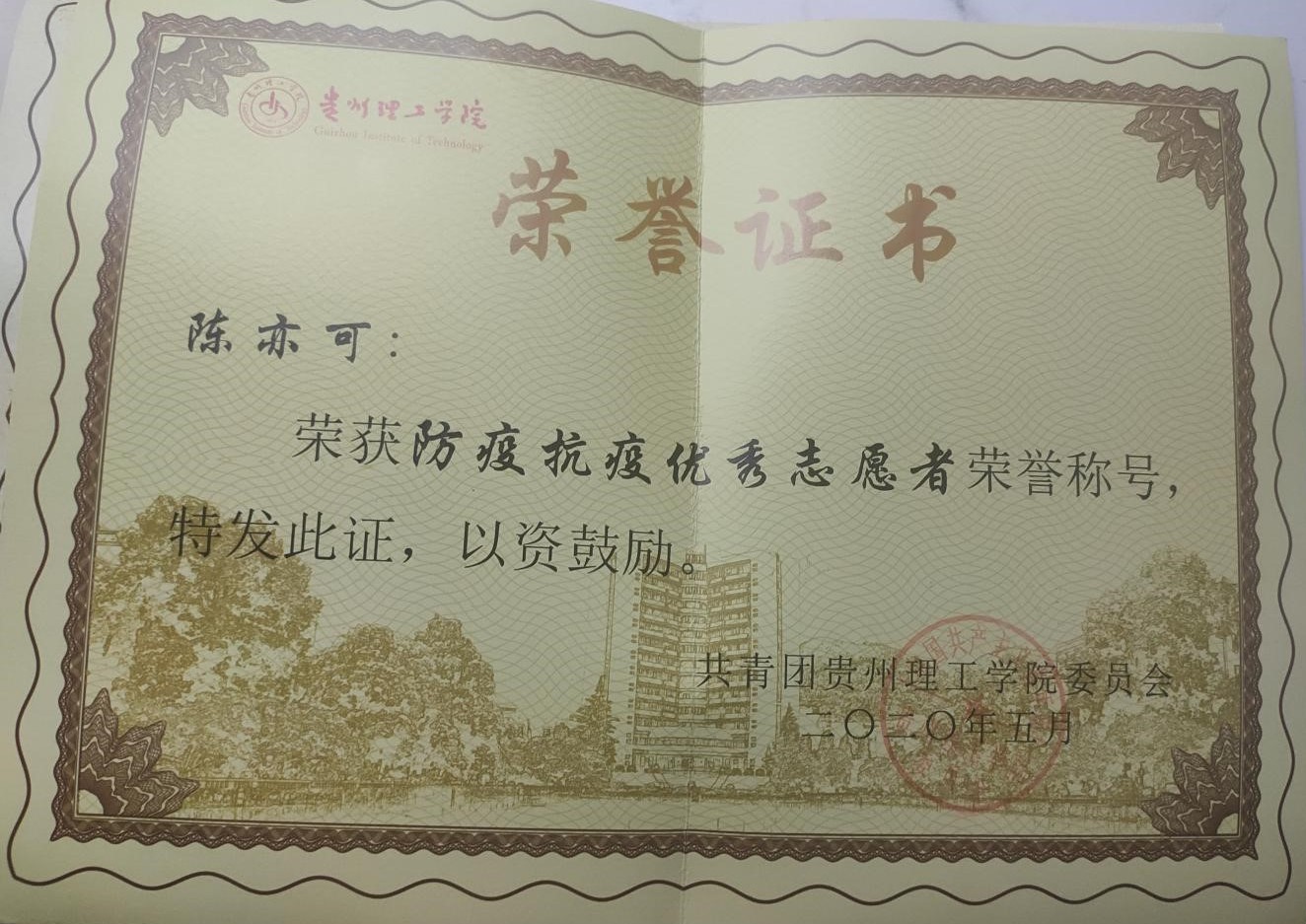 学习上积极认对待各类课程,踏实努力完成科任老师习题及测试,大一综测班级排名前十五,年级排名前三十。2020年荣获“贵州理工学院第二届信息可视化大赛”动态组三等奖。