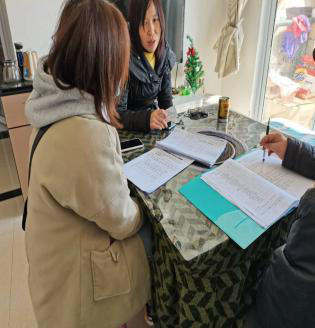此后,龙潭社区党部书记刘开仙与小队成员对居民基本情况进行核实。通过书记讲解的每一份调查问卷中,我们感受到了刘书记对这个社区深厚的情感。