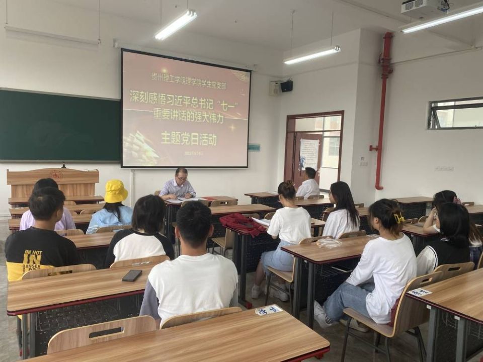 黄念庆书记带领理学院学生党支部全体党员们学习了习近平总书记‘七一’重要讲话的重点和要点,他指出,习近平总书记的重要讲话饱含深情、鼓舞斗志、激荡人心。他号召,广大青年学生要牢记习近平总书记的嘱托,以实现中华民族伟大复兴为己任,增强做中国人的志气、骨气、底气,不负时代,不负韶华。