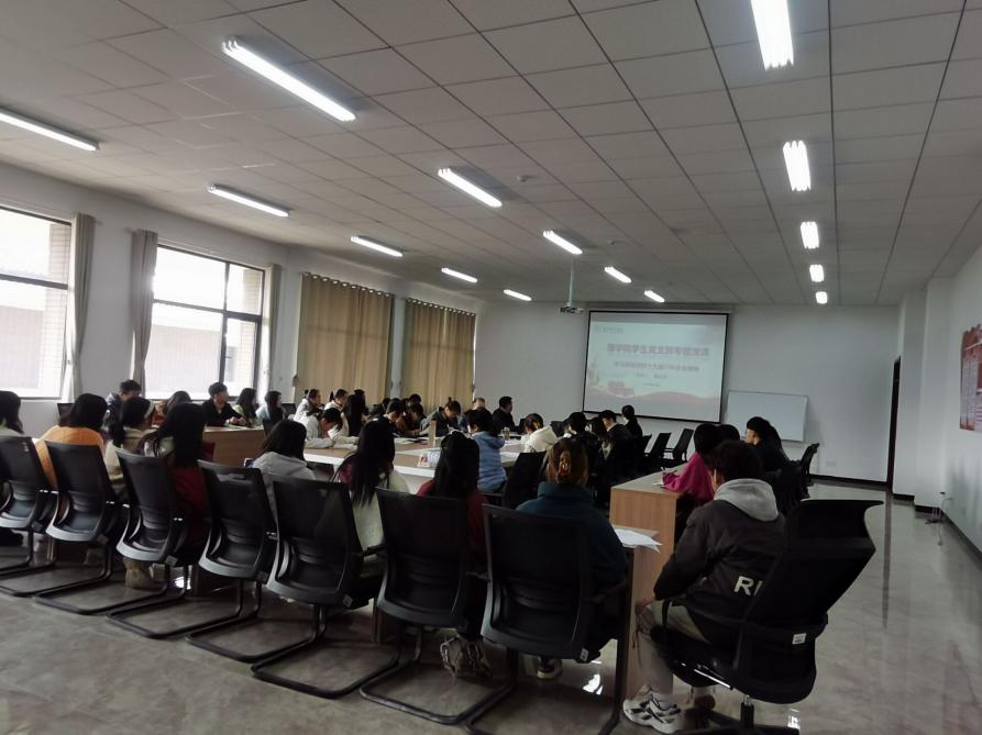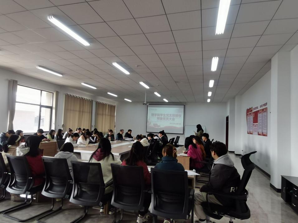 本网讯(理学院潘敏英/文 潘敏英/图)12月3日中午,理学院学生党支部在理学院G3533会议室召开了学生党支部接收预备党员大会暨学习贯彻党的十九届六中全会精神主题党日活动。本次会议由理学院党总支书记兼学生党支部书记黄念庆同志主持,由党总支副书记蒙蔺、教师党支部副书记王姣、理学院组织员王大飞、学生党支部全体党员同志、预备党员和发展对象共同参与。