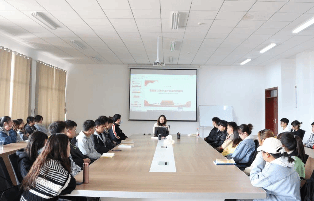 张梦老师首先简要介绍了党的十九届六中全会召开的情况,接着,她从六中全会召开主要背景和重大意义、主要精神以及践行新时代青年学子的使命担当等方面深入解读全会精神,与同学们分享了自己的思考和体会。