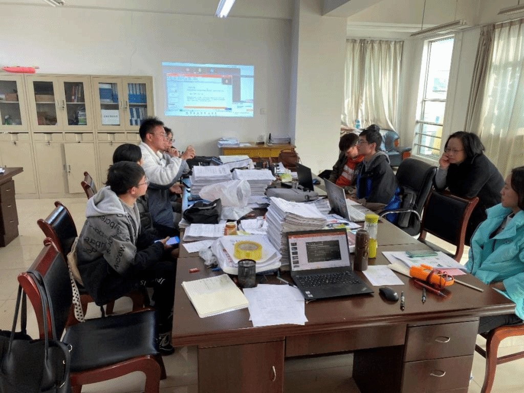 图——赛前指导,参赛队员与理学院老师展开激烈讨论