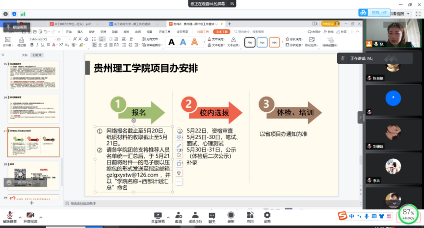 为进一步深化大学生志愿服务的意识,引导更多的优秀大学生参加志愿服务西部计划,鼓励毕业生到基层工作。4月22日,理学院在线上召开“趁青春,去西部”2022理学院大学生志愿服务西部计划宣讲会。此次宣讲会由理学院团总支副书记、学生科副科长张梦老师主讲,理学院2018级全体学生参加了本次宣讲会。