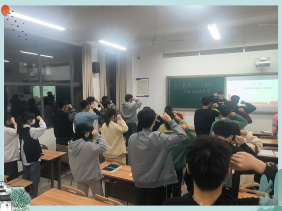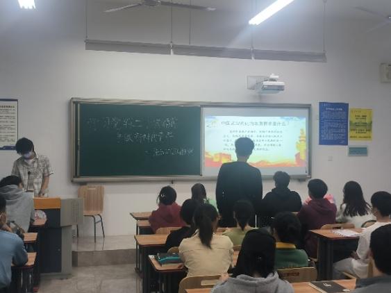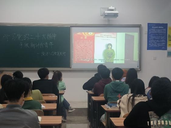 活动伊始,由团支书张文馨同学向同学们介绍此次团组织生活的主题“学习党的二十大精神,争做新时代青年”,同时,团支书强调:“作为青年学子,我们应当不忘初心、牢记使命、艰苦奋斗、自信自强”。紧接着,团支书为同学们详细的介绍了党的二十大报告内容,通过团支书的介绍,同学们都在感叹祖国的强大与活力,报告全面总结了过去五年的工作和新时代十年的伟大变革。