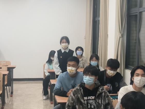 紧接着,我们邀请了理学院团总支学生副书记周义同学带领统计221班重温入团誓词,重温入团誓词就是重温当年的决心和信念,是激励我们努力当下、强化信仰,是促使我们与时俱进,也是提醒我们恪守诺言的真诚。同时,周义学长还鼓励同学们:一定要永葆青年风采、青春底色,继续秉持“知行至善,厚积薄发”的理工精神。