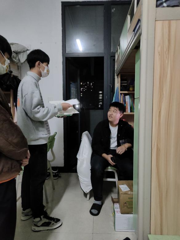 当我们敲开宿舍大门,能看到大一的同学们展现出的阳光与积极,同时学生会同学们对新同学在新的校园生活与学习进行了关心与了解,在与同学们的洽谈中,发现部分同学除了学业上还没有完全适应,生活已经完全适应了大学的生活。在学业方面,参加慰问活动的学长学姐向新同学们就学院各门课程进行了讲解,并建议同学们在闲暇之际,多找一些习题检验所学知识是否掌握。