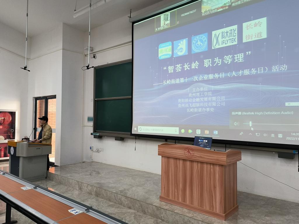 本次校企“双选”活动由贵州理工学院理学院、贵阳移动金融发展有限公司、贵州讯飞超脑科技有限公司及观山湖区长岭接到办事处联合主办,活动为长岭街道辖区企业和理学院2023届毕业生搭建对接平台,更好地为学生就业、企业用人需求提供服务。双选会当天分别在贵州理工学院与讯飞科技有限公司设立了两个会场,实现全流程线上招聘环节:企业利用贵州通招聘平台提前发布职位,视频连线讲解企业文化、解答学生提问,线上完成简历投递,企业线上选才,实现“足不出户、找到工作、招到人才”。参与本次双选会的企业有云上贵州大数据产业发展有限公司、贵州数创控股(集团)有限公司、贵州万佳实业集团有限公司等业内龙头企业20余家,提供了软件测试、数据运营、大数据分析等60余个岗位。理学院党总支书记黄念庆出席本次招聘会并讲话“感谢主办方搭建企业与求职者之间的桥梁,让学生能够充分发挥专业技能,学有所成,学有所用。”最后收集了学生们现场投递的150余份简历。