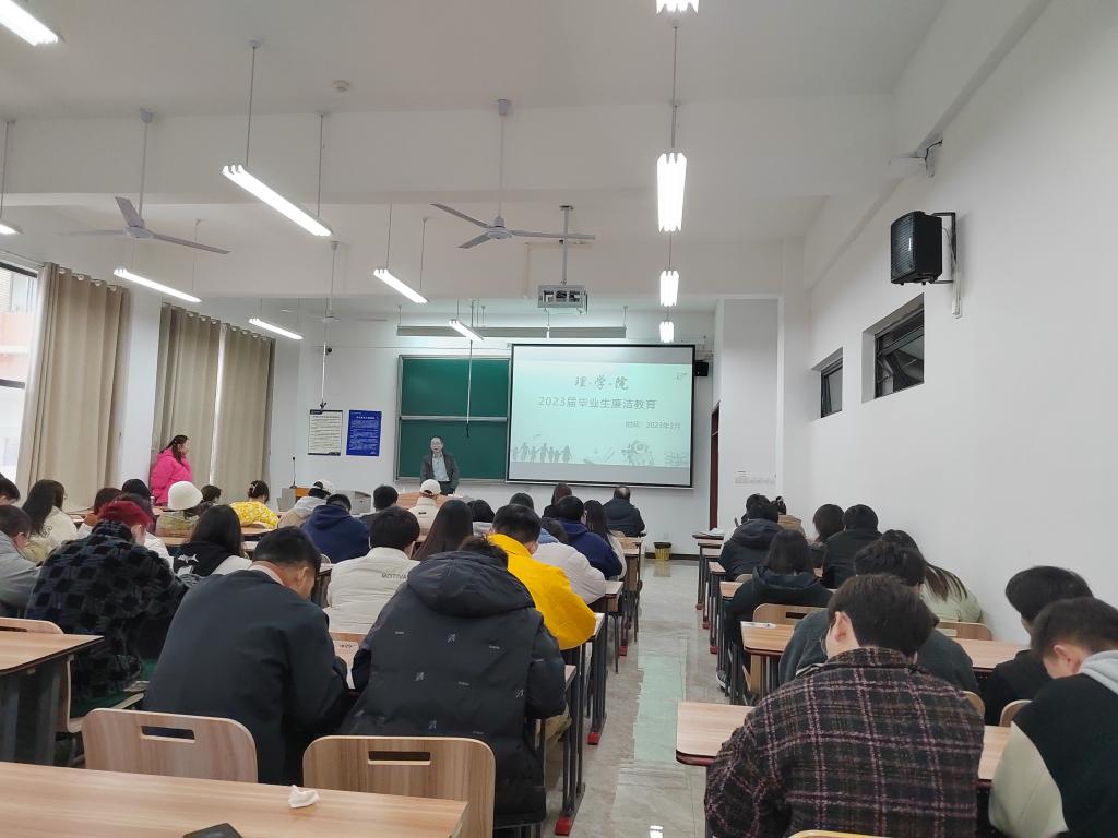 为了加强大学生的思想政治教育,帮助青年大学生进一步树立和践行社会主义核心价值观,走好职业生涯第一步,让同学们正确理解反腐倡廉对自身乃至社会的重要性,理学院于2023年3月1日下午在贵安校区G1217面向理学院2023届全体毕业生开展了“廉洁教育”大会。本次教育大会由理学院党总支书记黄念庆主讲,理学院副院长、理学院党总支纪检委员曾诚主持,理学院2019级辅导员、班主任及全体同学参加了本次教育大会。