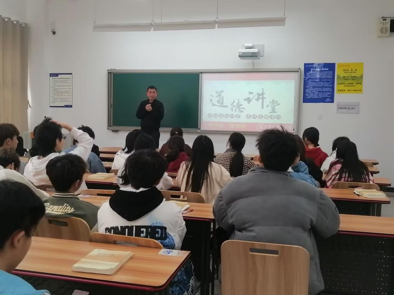 为深入学习宣传和进一步贯彻习近平新时代中国特色社会主义思想及党的二十大精神,并为进一步强调这一首要政治任务,2023年3月31日下午,理学院开展了以“扎牢意识形态底线,争做红色工程师”为主题的“道德讲堂”活动,本次活动特别邀请了理学院跟岗锻炼副院长、副教授张世功作为主讲人,理学院22级全体同学参加。