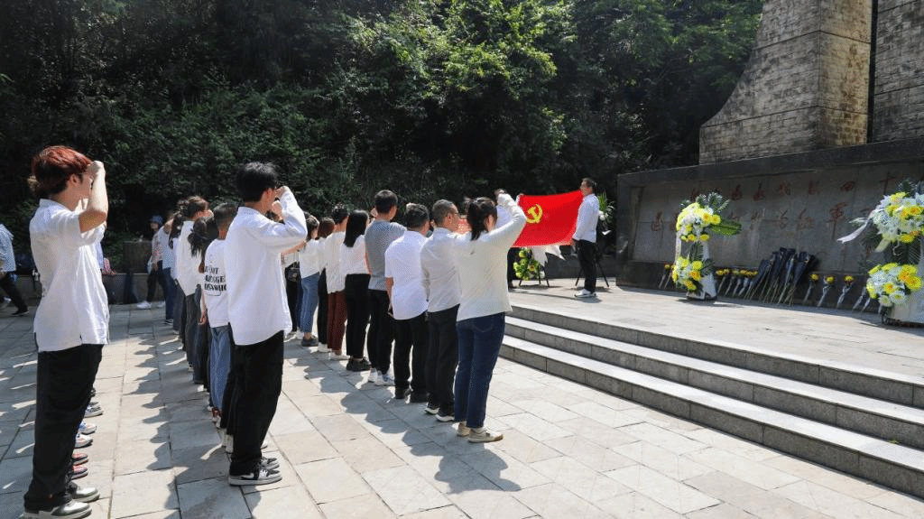 全体党员实地参观了娄山关红军战斗遗址和陈列馆,聆听了一堂主题为“一条腿的长征”的微党课,面向红军英雄纪念碑敬献鲜花并默哀,高举右手重温入党誓词,缓缓环绕纪念碑,瞻仰革命烈士。