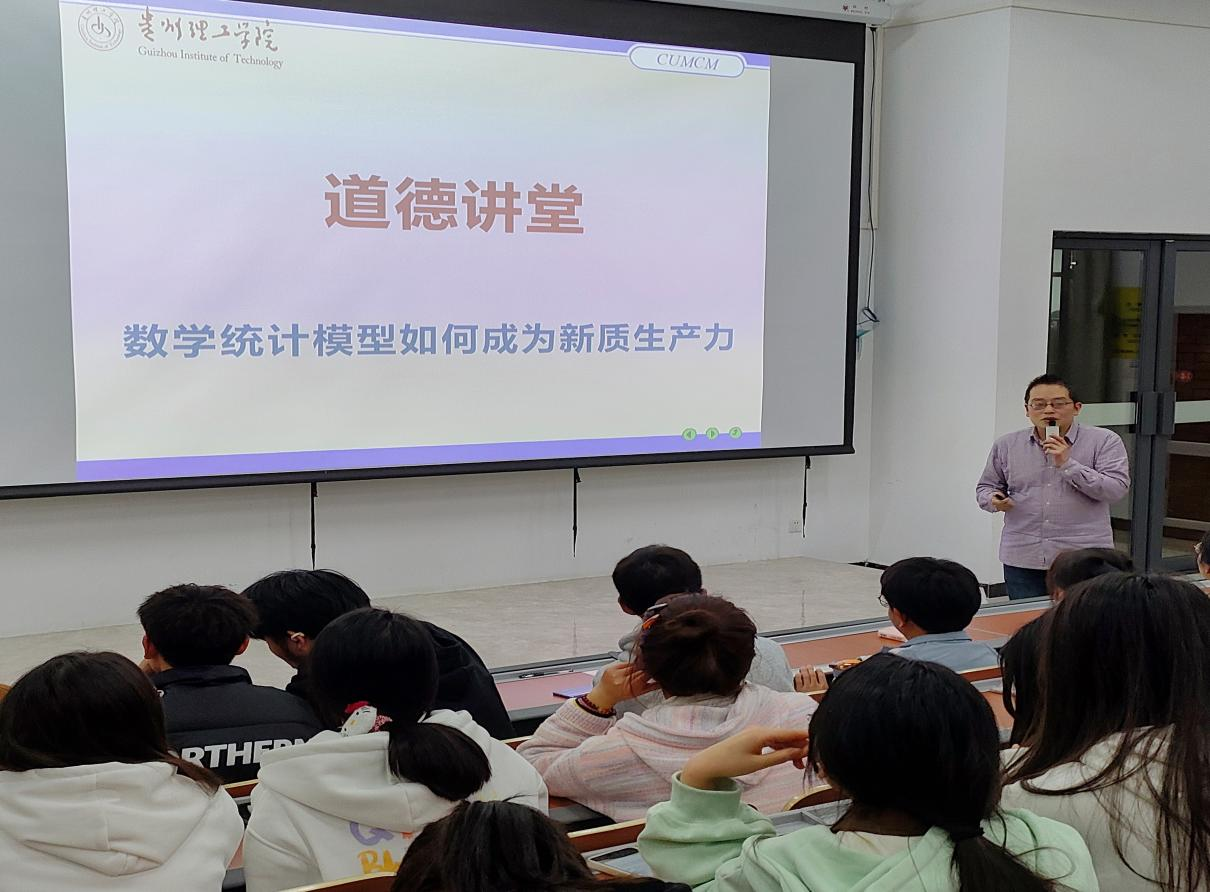 为深入学习宣传贯彻全国两会精神,推动学院学科建设高质量发展,培养应用型高素质人才, 3月21日,理学院在天工楼G2109教室开展了学科建设讲座暨理学院春季道德讲堂活动,此次活动由理学院副院长曾诚教授主讲,主题为“数学统计模型如何成为新质生产力”,全校200余名同学参加。