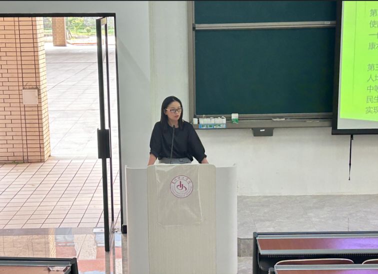 为深入学习宣传贯彻党的二十届三中全会精神,引导大学生担起使命,融入中国式现代化建设进程中,2024年9月19日,理学院党总支副书记章丽娥在天工楼G2109教室对2024级全体同学作党的二十届三中全会精神宣讲。