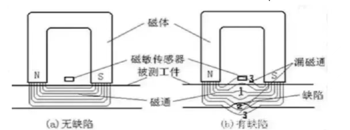 磁粉检测是基于缺陷与基体材料的磁特性(磁阻)不同,穿过基体的磁力线在缺陷处将产生弯曲并可能逸出基体表面,形成漏磁场。若缺陷漏磁场的强度足以吸附磁性颗粒,则将在缺陷对应处形成尺寸比缺陷本身更大、对比度也更高的磁痕,从而指示缺陷的存在。该方法仅能用于检测铁磁性工件表面或近表面间隙极窄的裂纹和目视难以看出的缺陷。