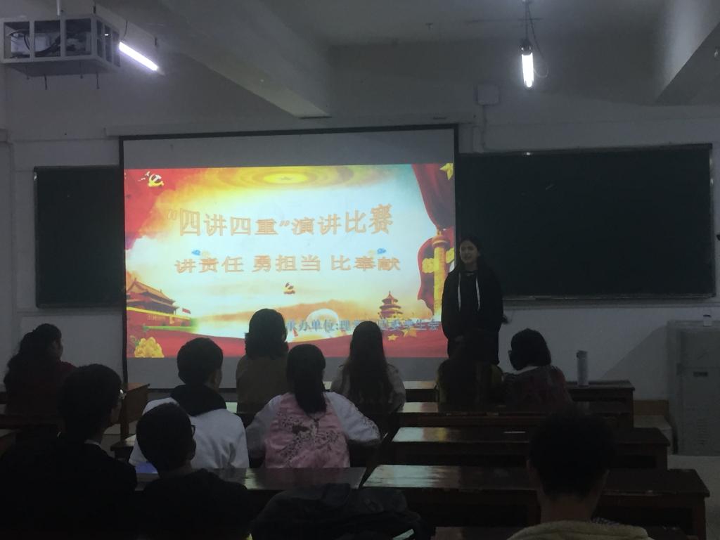 映着鲜红的党旗,本次演讲比赛正式开始,比赛共有13位选手参加,选手们都以饱满的热情和激昂的语调,感染着全场观众。有声有色、各有特点地讲述了一个个动人的故事,精彩的演讲把比赛的气氛一点点推向高潮。最终,经过评审们商讨评分后,我院172班何婷婷同学的《责任与担当》力压群雄,何婷婷同学从自身出发,用身边感人至深的人物故事深刻诠释了责任与担当。荣获此次比赛一等奖,随后比赛各产生了五名获得二等奖、三等奖的同学。而何婷婷同学也成功脱颖而出,将继续代表我院至学校“四讲四重”演讲比赛中参赛,希望她能以更加饱满的精神面貌、更好的发挥,为全校师生展现我们理学院学子别样的风采,也预祝何婷婷同学能够在校级比赛中取得好成绩,为理学院赢得新荣誉。