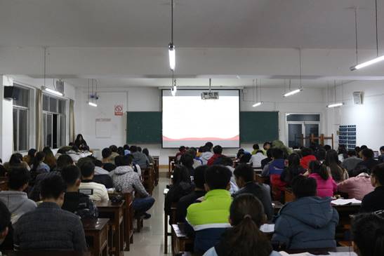(理学院统计173班付梅报道)习近平总书记在党的十九大报告中指出了中国特色社会主义进入了新时代,为组织同学们深入学习十九大精神,践行十九大思想,2017年12月27日晚上7:00整,理学院全体成员于三教315教室开展了以“践行新思想 拥抱新时代”为主题的团组织生活会。