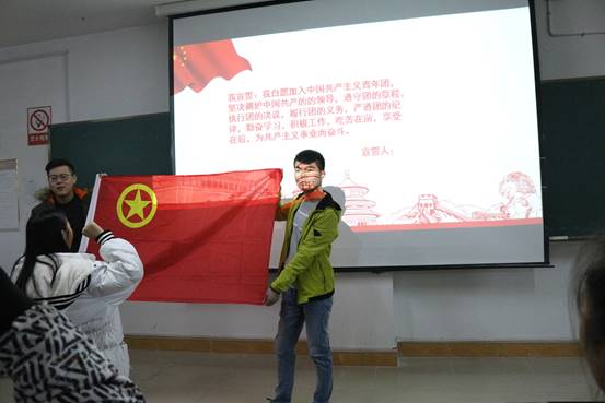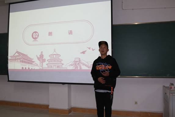 活动伊始,张晨恺同学首先为我们介绍此次活动的背景,激发出同学们的爱国情怀。在开始的热情中趁热打铁,尹玉琳同学带领理学院全体学生重温了入团誓词,让同学们能够重温自己的初心,牢记使命为之奋斗,那一句句铿锵有力的誓言都饱含着同学们对祖国的热爱之情! 其次,由王梓欢同学深情朗诵了一首《祖国啊,我亲爱的祖国》,他饱含深情的演绎,让全场同学们激情澎湃,用声音带我们感受到了国家昌盛,党的伟大。还沉浸在朗诵的感动中,潘忠洪和苏蓉蓉同学与大家分享了关于爱国主义和集体主义的书籍,带领同学们重温时代记忆,希望用他们的读书行动带领同学们把握时间,多读书,多学习,自发学习爱国主义和集体主义精神。不忘初心、牢记使命、大步前行!
