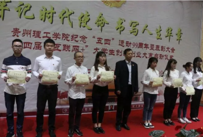 (理学院统计174班 熊鑫 报道)五四精神传承不朽,历史的使命引领着我们新时代青年走向了积极向上、努力拼搏时代征途。2018年5月4日下午14:00,贵州理工学院纪念五四运动99周年暨表彰大会以及第四届“互联网+”大学生创新创业大赛启动仪式在逸夫小报告厅举行,此次会议由贵州理工学院校团委书记李朋书记主持。