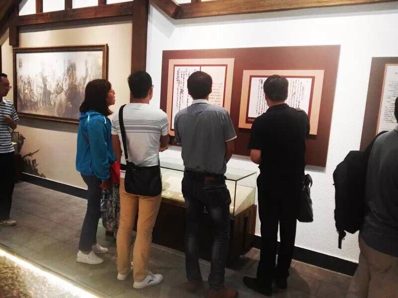 到达遵义市枫香镇,教职工一行先到苟坝会议陈列馆参观,馆内存放的历史文物再现了长征期间红军在遵义的战斗足迹,大家在一幅幅图片和一件件文物面前久久驻足,认真观看,仔细学习,为老一辈革命家们的大无畏革命情怀与坚定的党性立场与修养深为感动。参观完陈列馆,大家又实地参观了苟坝会议会址,在会址的几间黔北民房内,屋内陈列的当时红军穿过的草鞋、旧发报机和锈迹斑斑的马灯向大家讲述着当年毛泽东、周恩来等老一辈革命家带领红军艰难革命的艰辛历程,大家走在当年红军和毛主席走过的小道上,百感交集。
