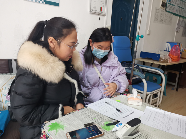 (图为同学和工作人员了解居民情况)