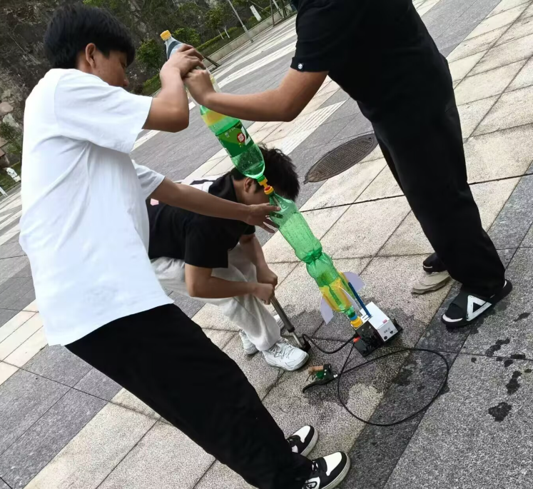 同学们利用课余时间调研和收集了大量信息,有的同学做成精美的PPT进行展示,结合基础理论、实验数据、图片和视频,加上同学们自己的理解进行成果分享;有的同学则带来亲手制作的物理模型,从设计思路到制作过程,向大家进行阐述,展现出扎实的动手能力和对物理学科的深刻理解。从书本知识到动手实践,同学们在物理知识的框架里自由穿行,充分展现了“路漫漫其修远兮,吾将上下而求索”的探索精神。会后同学们还到天工楼门前广场进行了二级水火箭的发射展示。