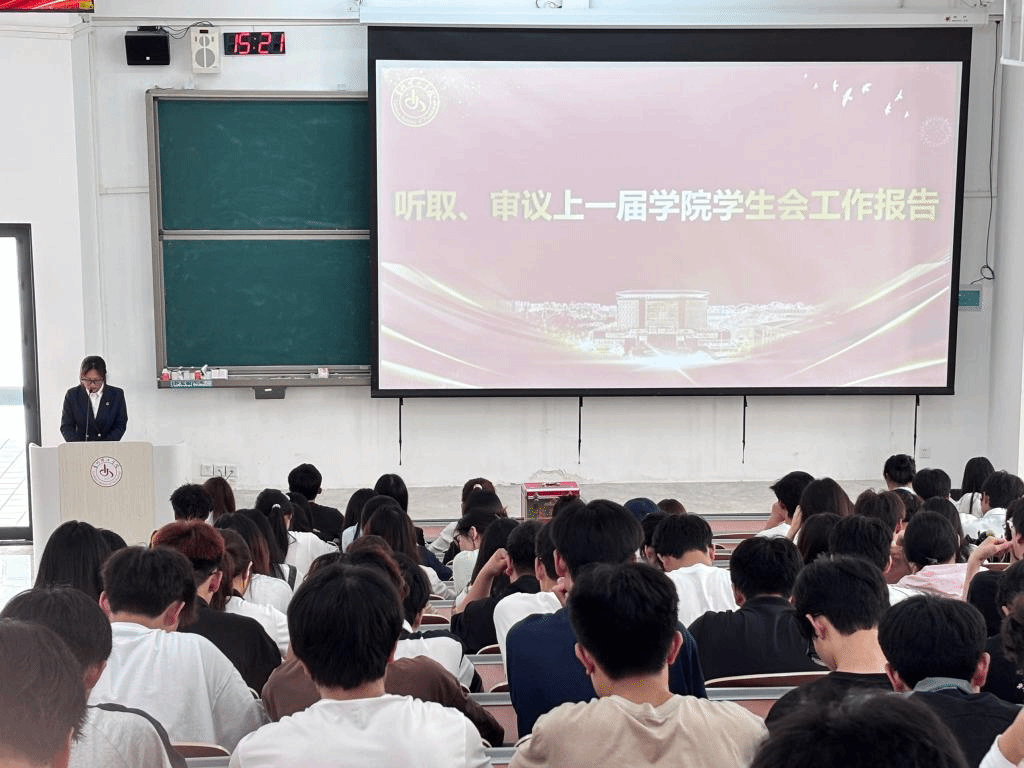 第六届学生会轮值主席魏加艳向大会作工作报告。报告全面回顾了过去一年学生会在思想引领、学风建设、社会建设、志愿服务等方面的工作成果,也客观分析了工作中存在的不足,并对未来工作提出了建设性的意见和建议。