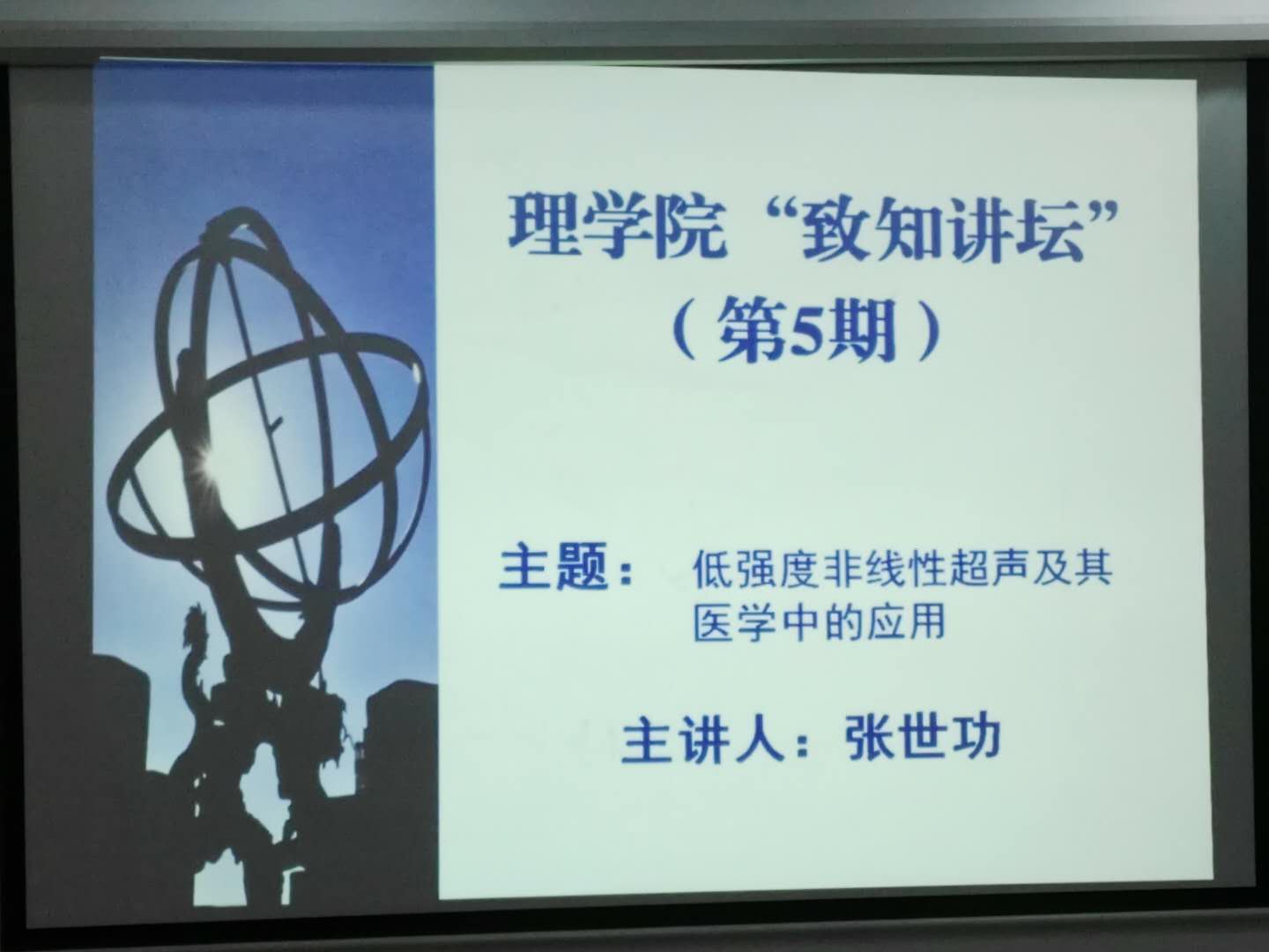 (理学院 肖志俊 报道)2017年10月13日中午13时,理学院第5期致知讲坛在理学院会议室进行。一场别开生面的专业讲座吸引了理学院的老师们,2017国家自然科学基金科研项目获得者、理学院副教授张世功博士在报告中以“低强度非线性超声及其在医学中的应用”为题,向大家分享了自己的学术研究心得。