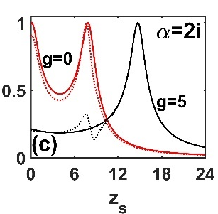 图1:(左)不同传输距离下EGBwCP的光强和位相分布情况;(右)近轴近似(实线)和考虑最低阶非近轴修正(虚线)下的EGBwCP的轴上强度随传输距离的变化关系。