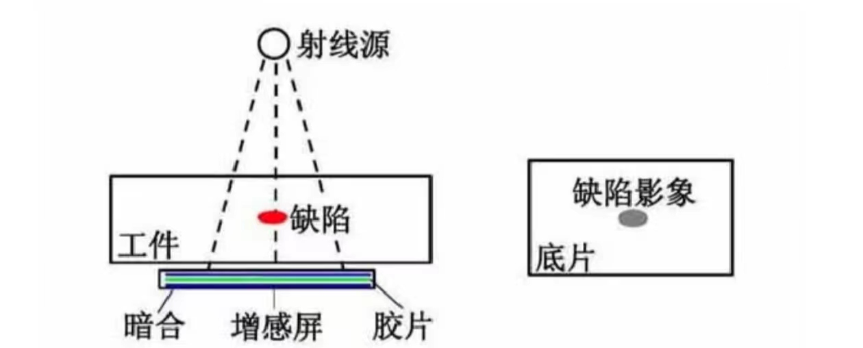 利用射线(X射线、γ射线和中子射线)在介质中传播时的衰减特性,当将强度均匀的射线穿透被检工件时,由于缺陷与被检工件的基体材料对射线的衰减特性不同,透过被检工件后的射线强度将会不均匀,用胶片感光、荧光屏直接观测等方法来检测透过被检工件后的射线强度,即可判断被检工件是否存在缺陷引起透射射线强度的变化。