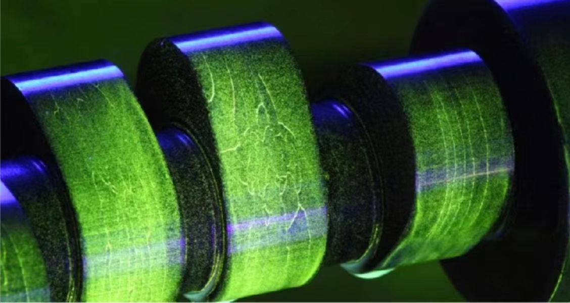 磁粉检测是基于缺陷与基体材料的磁特性(磁阻)不同,穿过基体的磁力线在缺陷处将产生弯曲并可能逸出基体表面,形成漏磁场。若缺陷漏磁场的强度足以吸附磁性颗粒,则将在缺陷对应处形成尺寸比缺陷本身更大、对比度也更高的磁痕,从而指示缺陷的存在。该方法仅能用于检测铁磁性工件表面或近表面间隙极窄的裂纹和目视难以看出的缺陷。