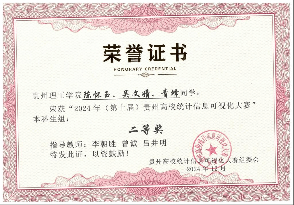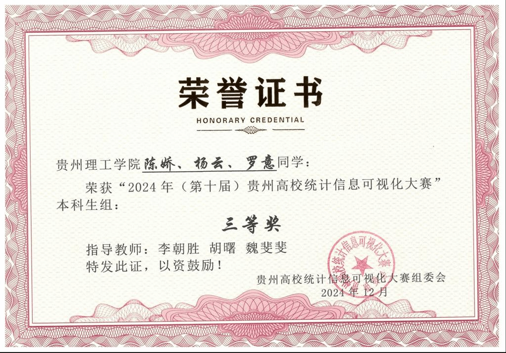 大赛以“聚焦新质生产力,推进贵州高质量发展”为主题,理学院负责组织校级竞赛,并选拔学生参加全省决赛,其中三支队伍分别获省级一等奖、二等奖、三等奖各一项。参赛作品展示了贵州在西部大开发综合改革示范区、巩固拓展脱贫攻坚成果样板区等方面的发展成就。