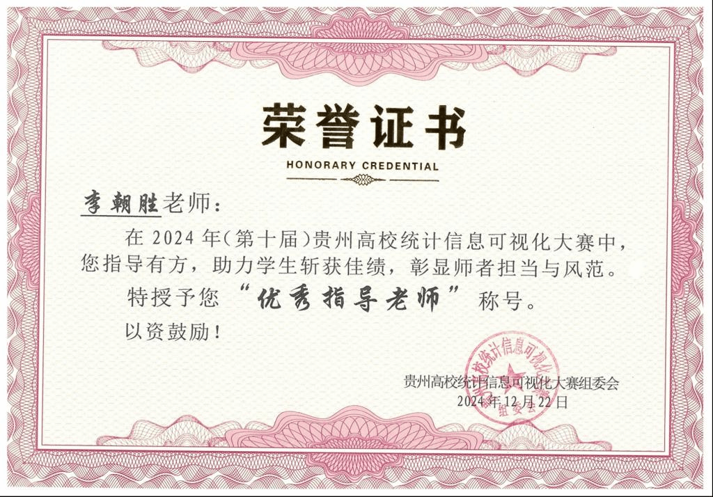 第十届贵州高校统计信息可视化大赛决赛日前在贵州财经大学成功闭幕,我校选拔的参赛作品“黔山绿水:贵州生态发展之旅” 获得本科组一等奖、“聚焦生态环境——贵州绿色高质量发展”获得本科组二等奖、“黔贵脱贫路,山河换新篇”获得本科组三等奖。我院李朝胜老师获得优秀指导老师称号。