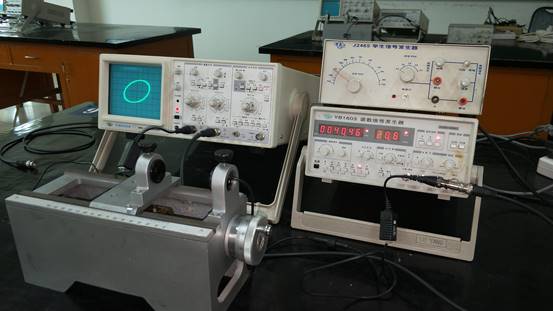 该装置以函数信号发生器、示波器、声速测定仪和超声换能器组成。分别利用驻波共振法和相位比较法测定声速,通过该实验让学生进一步熟悉示波器的使用方法,同时帮助学生理解波的特性。