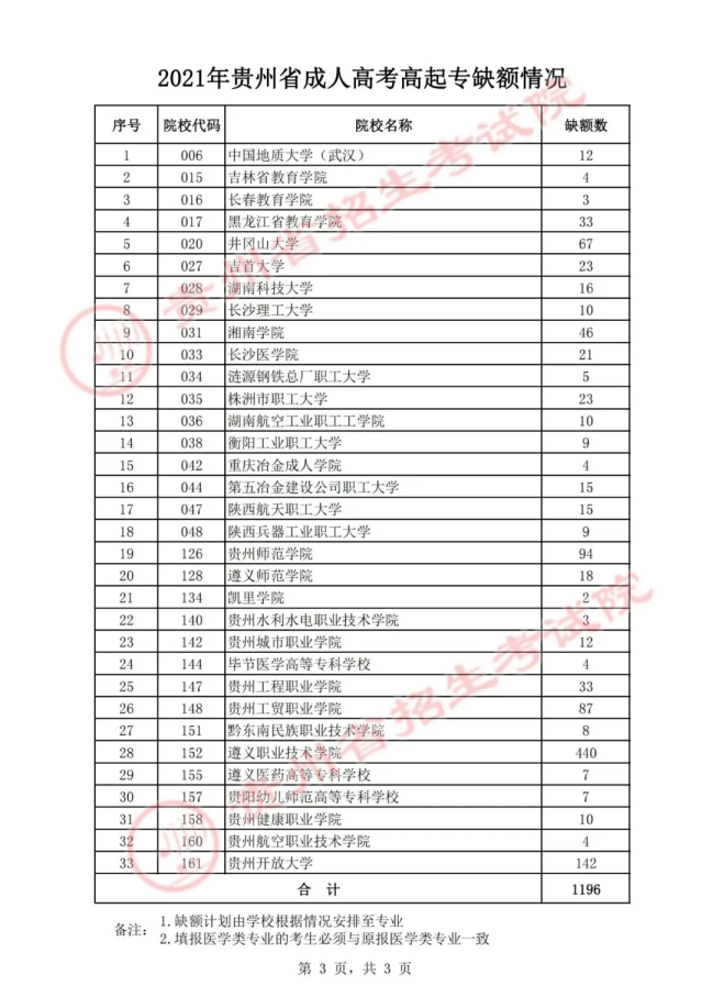 第一阶段录取工作结束后,尚有部分院校招生计划未完成(缺额情况见附件),考试成绩达到最低控制分数线且未被录取的考生,可以参加网上志愿征集。