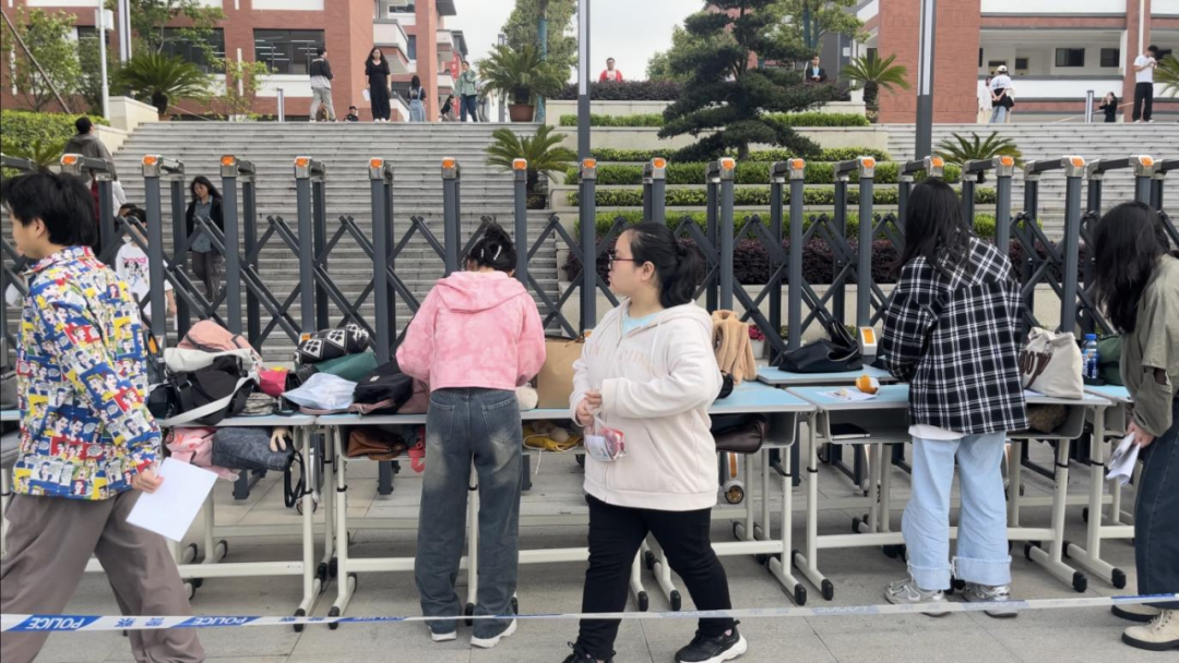 现场,严肃考风考纪,各考点秩序井然有序,并配备协警维持秩序,保障考试顺利进行。
