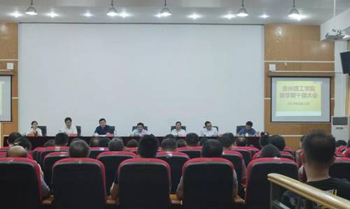 本网讯 8月12日上午,我校在喀斯特报告厅召开新学期干部大会,部署下半年工作,动员全校上下齐心协力,奋斗作为,以优异成绩迎接学校本科教学工作合格评估。会议由党委书记曾羽主持,校领导梁杰、张波、宋建波、苏向东、胡兴灿、贺梦依出席,全校科级以上干部参加会议。