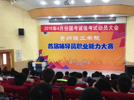 本网讯 为树立学生诚信为本的道德观念,营造积极向上的考试气氛,进一步推进公平公正的考风考纪建设,3月27日,继续教育学院在逸夫小礼堂进行2014级国考诚信考试动员大会,院长李辅敏、党总支副书记刘路宁、组织行为学老师汪树穹、2014级全体辅导员及全体同学参加了本次动员大会。