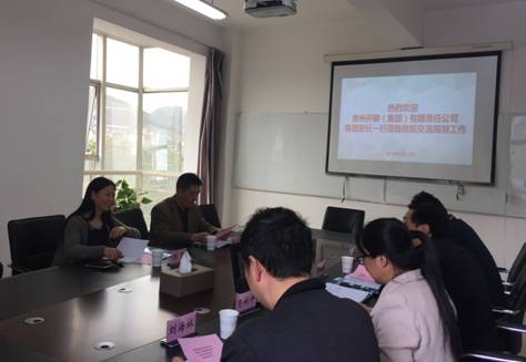 本网讯 (卢源源)3月14日下午,贵州开磷(集团)有限责任公司培训中心陈雪部长一行,到贵州理工学院继续教育学院,洽谈开磷集团职工学历提升、培训学习事宜。座谈会由贵州理工学院继续教育学院院长李辅敏教授主持,贵州理工学院继续教育学院副院长肖利平及贵州理工学院继续教育学院相关同志参加了座谈会。
