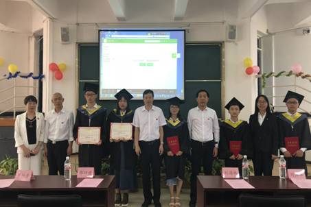 毕业生颁奖环节,梁杰副校长为优秀毕业学生颁发荣誉证书,李辅敏院长、肖利平副院长为优秀毕业论文获得者颁发了荣誉证书。仇书记在主持宣布名单后,希望受表彰的毕业、离校学生能够继续示范引领,以优秀的品德感染人,以优异的成绩鼓舞人,鼓励大家向获奖同学学习,奋力拼搏,不断进取,为母校争光。