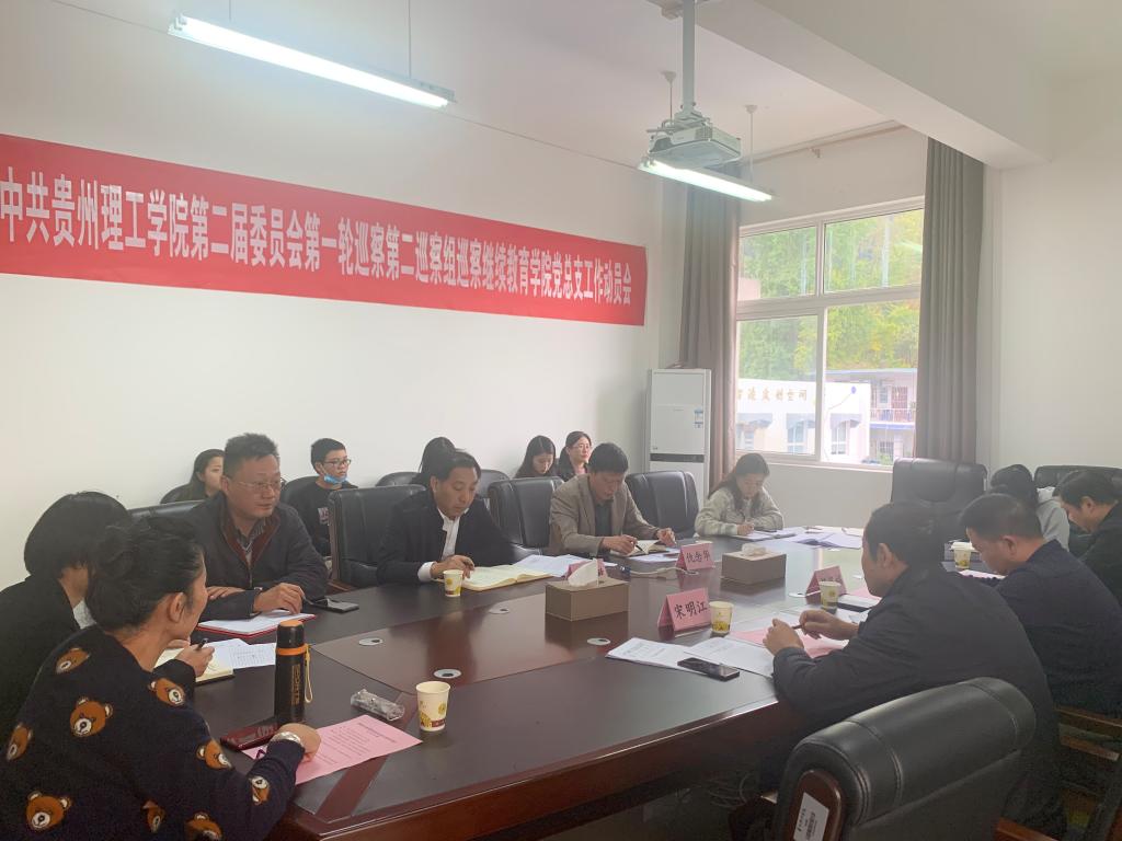 本网讯(继续教育学院 张静雪/文 张静雪/图)根据学校党委关于巡察工作的统一部署,2020年10月26日下午,中共贵州理工学院第二届委员会第一轮巡察组巡察工作进驻继续教育学院动员会在第四教学楼301会议室召开。校党委第二巡察组组长杨鉴福,继续教育学院党政主要负责人出席会议。会议由学院党总支书记仇念华主持,全体教职工及学生代表参会。