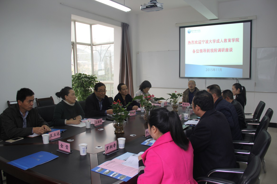本网讯(继续教育学院 吴丹)11月19日,宁波大学成人教育学院副院长陈伯利一行6人到我院交流座谈,继续教育学院党总支副书记刘路宁,李彦昭博士等参加了座谈会。