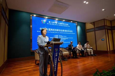 中国-东盟中心秘书长杨秀萍、东南亚教育部长组织—高等教育与发展区域中心主任Chantavit Sujatanond、中国高校创新创业教育联盟秘书处主任虞苍璧分别致辞。