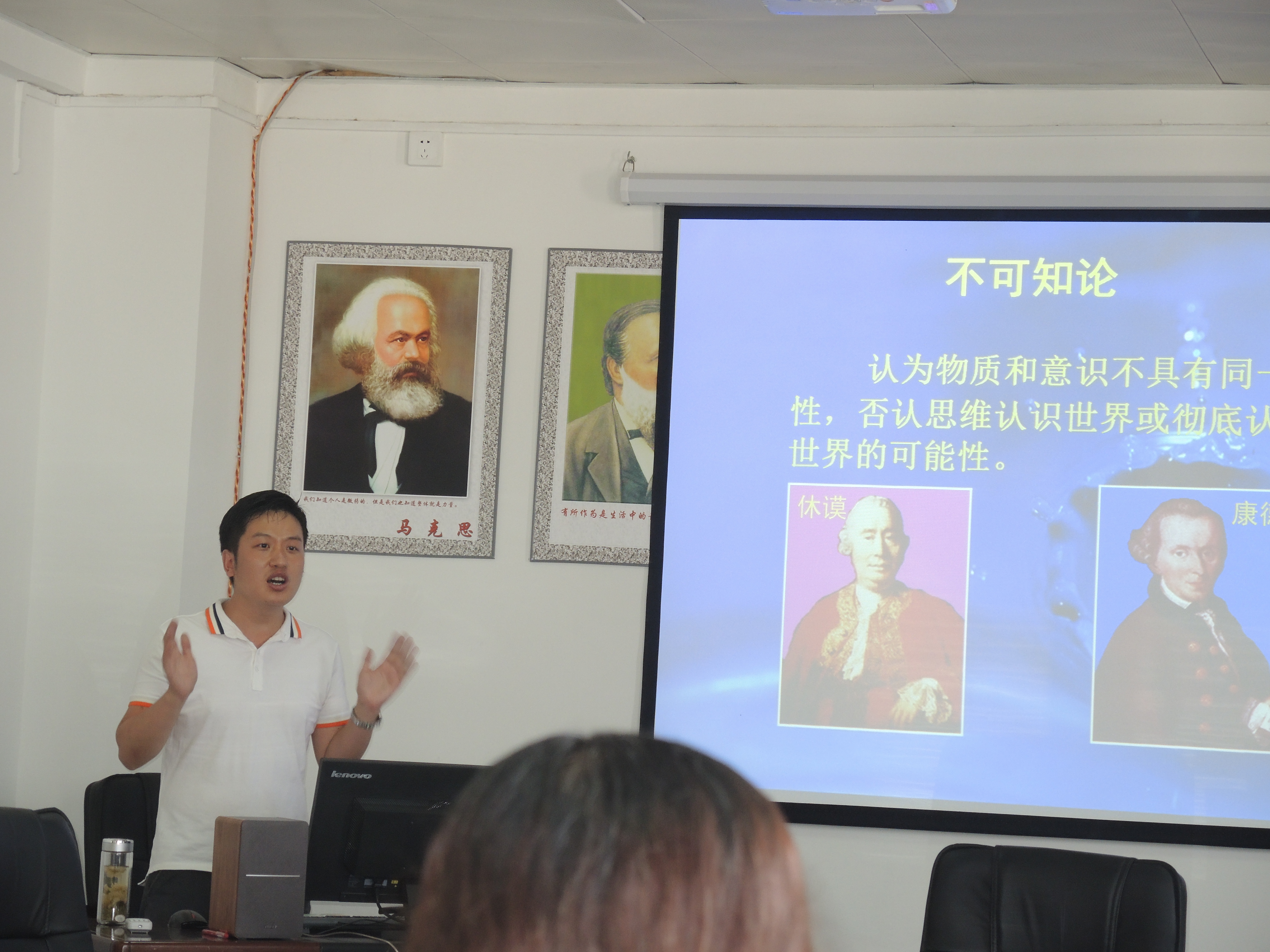 袁小松副教授以“原理”课“哲学基本问题”为切入点,具体讲授了“思维和存在”、“可知论与不可知论”的关系问题,讲授问题概念清楚、观点明确、逻辑清晰、案例有说服力。观摩课后,参加观摩活动的领导及老师就“原理”课教学中老师们关注的细节问题进行了充分而细致的交流与探讨。老师们纷纷表示,参加这次教学观摩活动受益匪浅,启发很大,对自己接下来的教学有着极大的促进作用。
